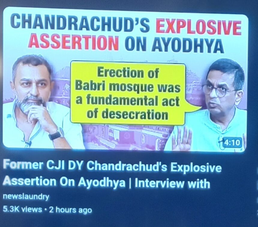 In a recent public address that has sent shockwaves through India’s legal and civil society circles, former Chief Justice of India D.Y. Chandrachud declared that the 16th-century construction of the Babri Masjid was “a fundamental act of desecration.” While framed as historical commentary, this statement is not just misleading—it is a stunning betrayal of judicial integrity, a repudiation of archaeological evidence, and a troubling alignment with the very rhetoric long peddled by Hindutva groups like the Bajrang Dal.