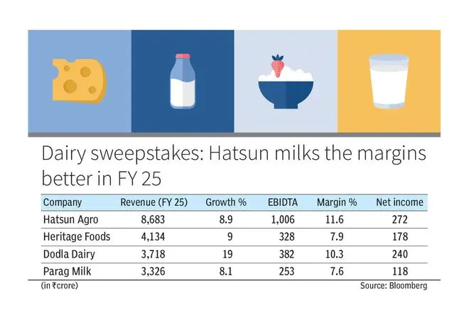 With a good half year for FY26, registering sales of ₹5,018 crore, Chandramogan says, for the full year, Hatsun could hit the ₹10,000-crore turnover milestone if the positive trend stays. For the half year, it registered EBIDTA of 13.8 per cent (19.6 per cent growth over H1FY25) while peers Heritage Foods and Dodla Dairy registered 7.5 and 10.1 per cent, respectively.